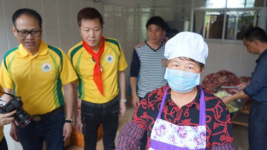 基金會副主席阮玉森先生親自爲學生們盛飯菜