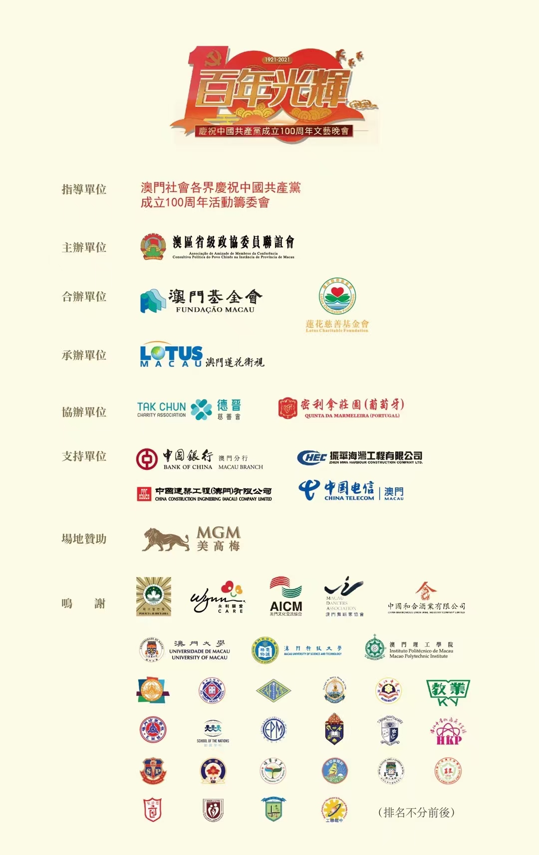 | 澳門蓮花慈善基金會合辦“百年光輝--慶祝中國共產黨成立100周年文藝晚會” |